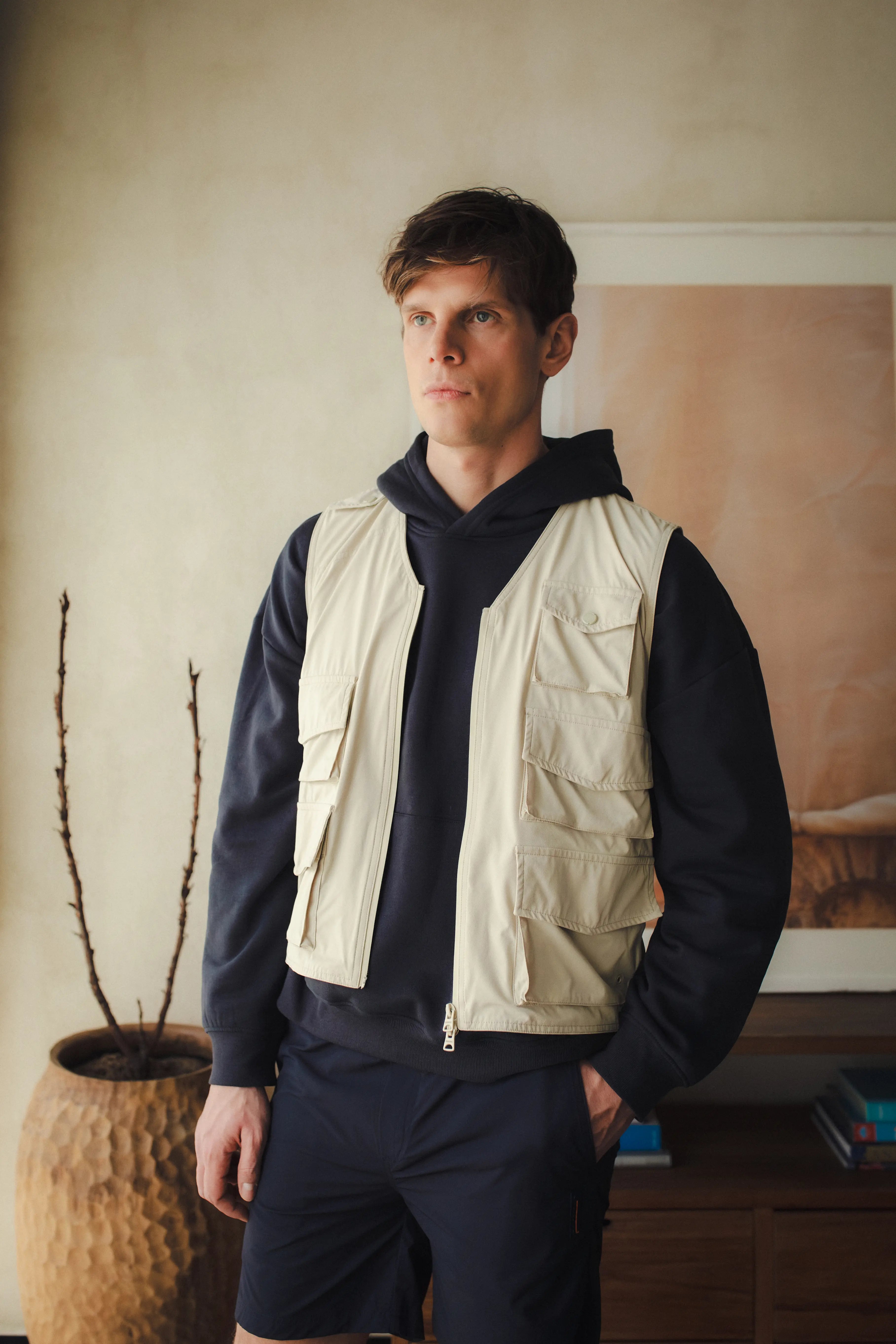 Chaqueta arena con capucha removible para hombre Holmium